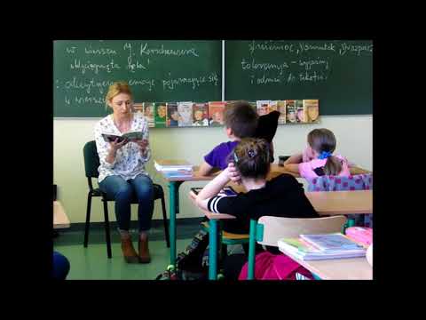 W ramach II Ogólnopolskiego czytania Jeżycjady nasza szkoła przystąpiła do akcji popularyzującej czytanie jednej z najpopularniejszych polskich sag. Od połowy marca zachęcamy czytelników, aby wstąpili na ulicę Roosvelta - do szkolnej biblioteki i poczytali wybraną książkę z serii Jeżycjada. Klasy IVb i IVd wraz z nauczycielką języka polskiego - panią Iwoną Kozak przystąpiły do akcji głośnego czytania wybranych powieści Małgorzaty Musierowicz. Podczas uroczystego czytania 10 kwietnia pani Aneta Szadziewska- nauczyciel bibliotekarz opowiedziała czwartoklasistom o ciekawostkach związanych z Jeżycjadą, autorce i przedstawiła cel akcji. Chętni uczniowie czytali przygotowane fragmenty powieści na forum klasy. W grupie odważnych lektorów znaleźli się K. Małaj, i A.Pawłowska z IVB oraz L.Jukowska z IVD. Piękny fragment o miłości przeczytała w sposób aktorski pani Iwona Kozak. Dzięki takiej lekcji uczniowie poznali kolejne historie bohaterów rodziny Borejko, które już znali z niedawno omawianej lektury "Opium w rosole". Była to też okazja do poznawania nowych słów. Wspólna dyskusja pomogła w wzbogaceniu słownictwa czawrtoklasistów o takie słowa jak brulion, absztyfikant, czarna polewka. Gościem specjalnym w klasie IVD była nauczycielka języka polskiego - pani Weronika Lameńska, której przyznaliśmy tytuł "Eksperta Jeżycjady". Tytuł nie jest bezpodstawny. Pani Lameńska napisała pracę magisterską na temat twórczości Małgorzaty Musierowicz. Zdradziła nam swoją osobistą historię "spotkania" z Jeżycjadą. Książki Małgorzaty Musierowicz zaczęła czytać w wieku około 10 lat dzięki starszej siostrze, która też była ich fanką. Większość tytułów przeczytała kilka razy pisząc pracę magisterską. Jeżycjadę ceni za to, że to zabawna, jak i wzruszająca literatura, a jej ulubiona bohaterka to Noelka. Pani Lameńska przeczytała uczniom zabawny fragment z "Szóstej klepki".